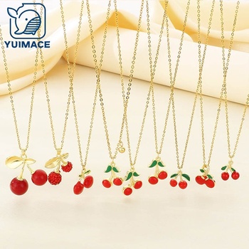 Atacado Cute Stainless Steel Cherry Pendant Colares com Link Chain Trendy Festival Amigo Gift Ideas
